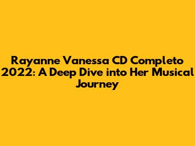 Hey guys! Are you ready to explore the mesmerizing world of Rayanne Vanessa? In this article, we're diving deep into her completo CD released in 2022. This isn't just a review; it's a journey through her music, understanding the emotions, the artistry, and the impact she's had on the music scene. Whether you're a long-time fan or new to her work, get ready to discover something special.