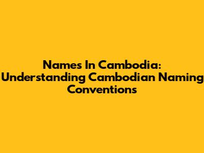 Names In Cambodia: Understanding Cambodian Naming Conventions