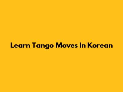 Learn Tango Moves In Korean