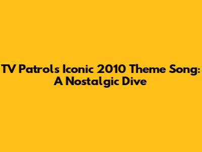 TV Patrol's Iconic 2010 Theme Song: A Nostalgic Dive