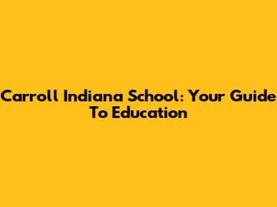 Carroll Indiana School: Your Guide To Education