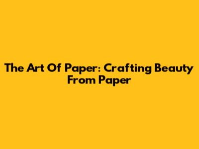 The Art Of Paper: Crafting Beauty From Paper