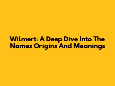 Wilmert: A Deep Dive Into The Name's Origins And Meanings