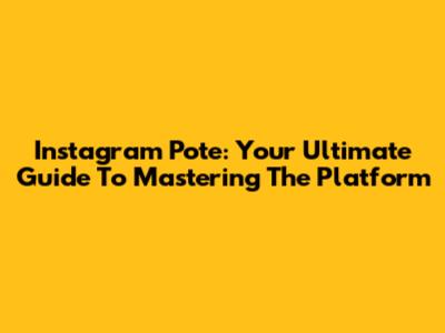 Instagram Pote: Your Ultimate Guide To Mastering The Platform