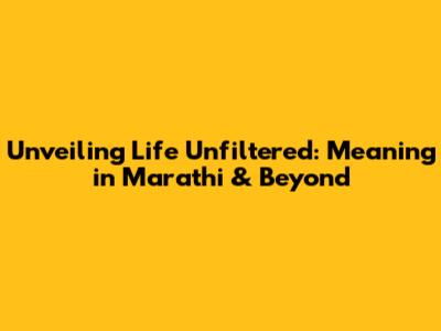 Unveiling 'Life Unfiltered': Meaning In Marathi & Beyond