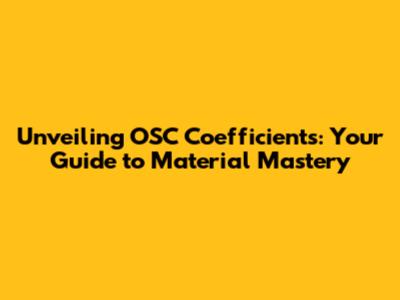 Hey guys! Ever wondered how we figure out the essential coefficients for materials, especially when things aren't quite up to par? Well, buckle up, because we're diving deep into the world of OSC (Out of Specification Calculation) coefficients! This guide is your friendly handbook to understanding and utilizing these crucial numbers. We'll break down the what, why, and how of OSC coefficients, making sure you're well-equipped to handle material assessments like a pro. From understanding the basics to applying them in real-world scenarios, we've got you covered. This is the ultimate resource for anyone looking to master the intricacies of material analysis. Ready to unlock the secrets behind OSC coefficients? Let's get started!