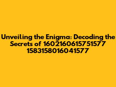 Hey guys! Ever stumble upon something that just screams mystery? Well, that's exactly what we're diving into today! We're talking about the intriguing sequence: 1602160615751577 1583158016041577. It's a string of numbers that might seem random at first glance, but trust me, there's a whole world of possibilities hiding beneath the surface. Now, before you start thinking this is some kind of secret government code or a lost alien message, let's take a deep breath and break it down. Our mission? To uncover what this sequence could represent. We'll explore different angles, from potential data formats to simple number patterns, all in the spirit of good old-fashioned investigation. Who knows, maybe we'll stumble upon something truly fascinating! So, buckle up, because we are about to embark on an adventure into the unknown.