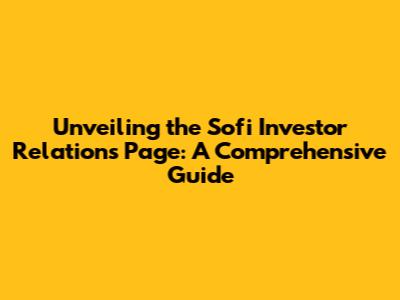 Unveiling The Sofi Investor Relations Page: A Comprehensive Guide