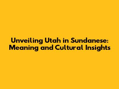 What Does 'Utah' Actually Mean in Sundanese?