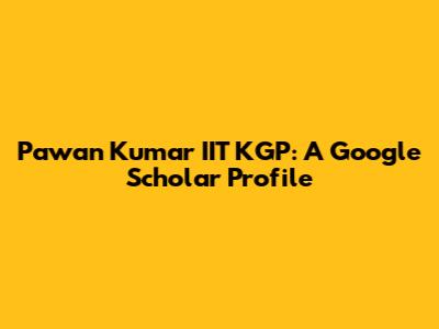 Pawan Kumar IIT KGP: A Google Scholar Profile