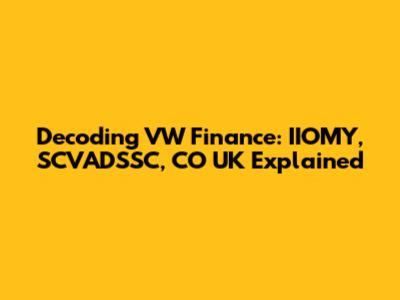 Hey everyone! Ever stumbled upon those cryptic codes like IIOMY, SCVADSSC, and CO UK while navigating VW Finance? Don't worry, you're not alone! It can feel like you've entered a secret language only finance gurus understand. But fear not, because we're going to break it down, making sense of these terms, and helping you feel more confident about your VW financing journey. This article is your comprehensive guide to understanding these key components of VW Finance, ensuring you're well-equipped to make informed decisions about your vehicle financing.