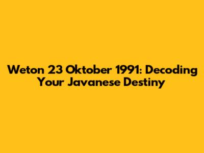 Alright, guys, let's dive into something super cool â the weton system! If your birthday falls on October 23, 1991, we're going to explore what that means for you based on the traditional Javanese calendar. It's like a cosmic fingerprint, giving us a peek into your personality, potential, and even your future. Don't worry, it's not about predicting doom and gloom; it's more like understanding the energies that influence your life. This ancient practice, deeply rooted in Javanese culture, uses a unique five-day market week ( Pasaran ) combined with the Gregorian calendar to create a personalized astrological profile. It's way more than just a birthdate; it's about the day you were born in relation to this Pasaran cycle. Itâs a fantastic system, and we are going to understand how it relates to you. So, buckle up! Weâre about to journey through the fascinating world of Javanese astrology, specifically tailored to the weton of October 23, 1991.