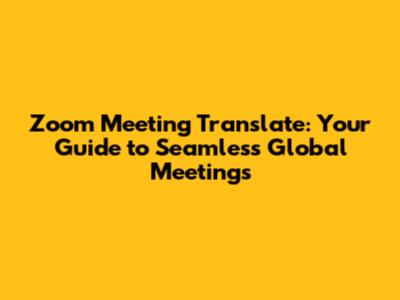 Zoom Meeting Translate: Your Guide To Seamless Global Meetings